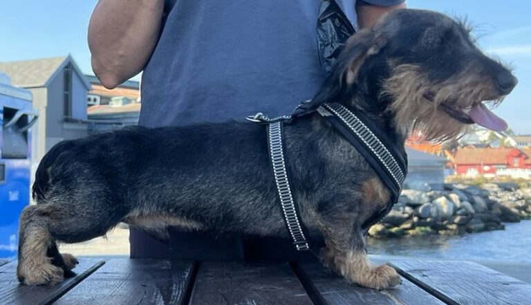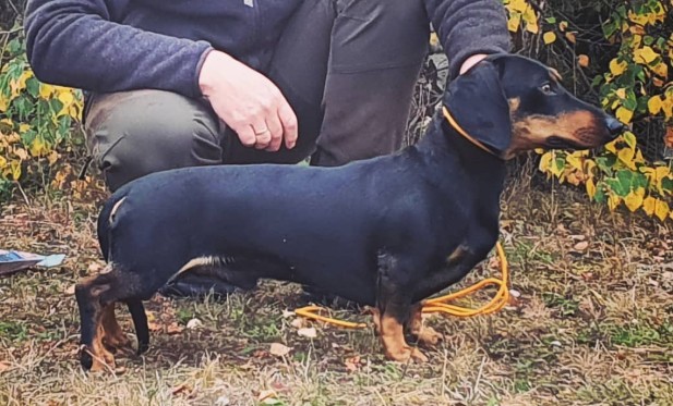 En langhåret dachs på ca 12 kg med rød pels. Pent ansikt og veldig kosegutt. Bor i Grimstad med to katter. Han har vært på tot 3 utstillinger med gode resultater. Kommer godt overens med andre småhunder og har et godt temperament.
